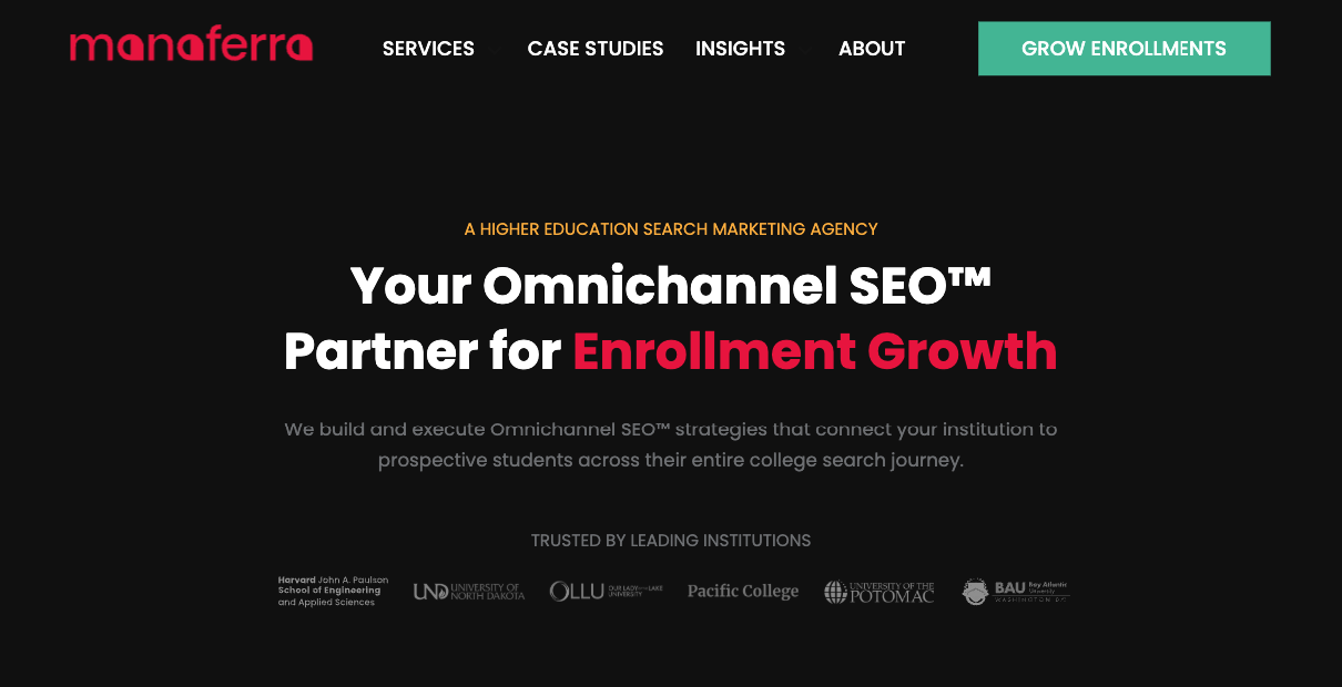 1. Manaferra – Award-Winning SEO Agency for Higher Education